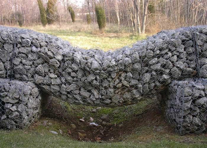 يتم تقسيم حاوية الشبكة السلكية الملتوية المزدوجة ذات الأحجام المختلفة إلى وحدات داخلية متساوية ،مترابطة مع وحدات أخرى مماثلة ومليئة بالحجارة بحجم المشروع لتشكيل هيكل شامل مرن ومرن مثل الجدران الداعمة، والسدود البحرية، وتغطية القنوات، وتغطية الضفاف والسدود لمشاريع مكافحة التآكل.